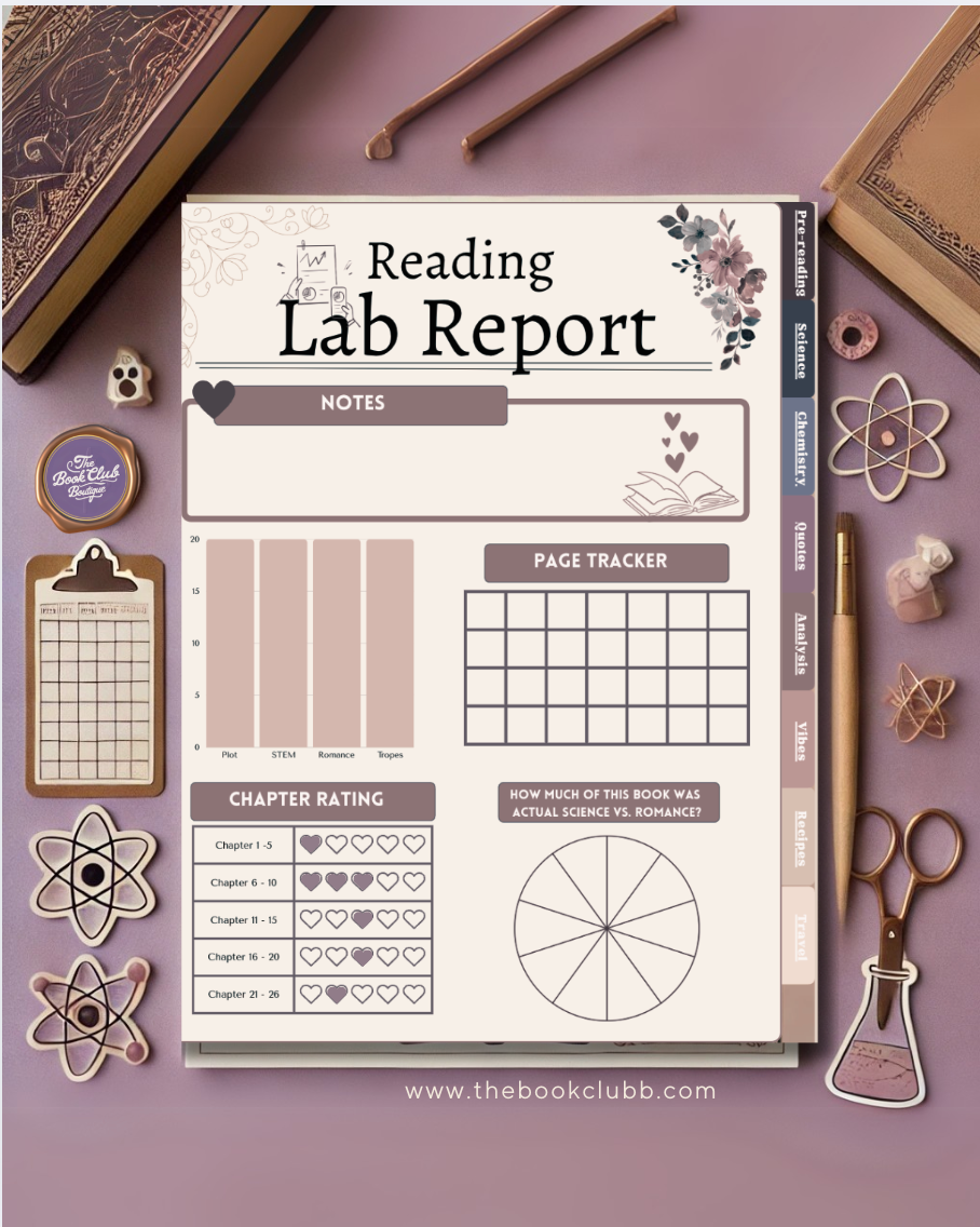 📓 A themed reading journal (digital) — Includes quotes, playlists, reflections, science analysis, creative prompts, a travel itinerary and even recipes.