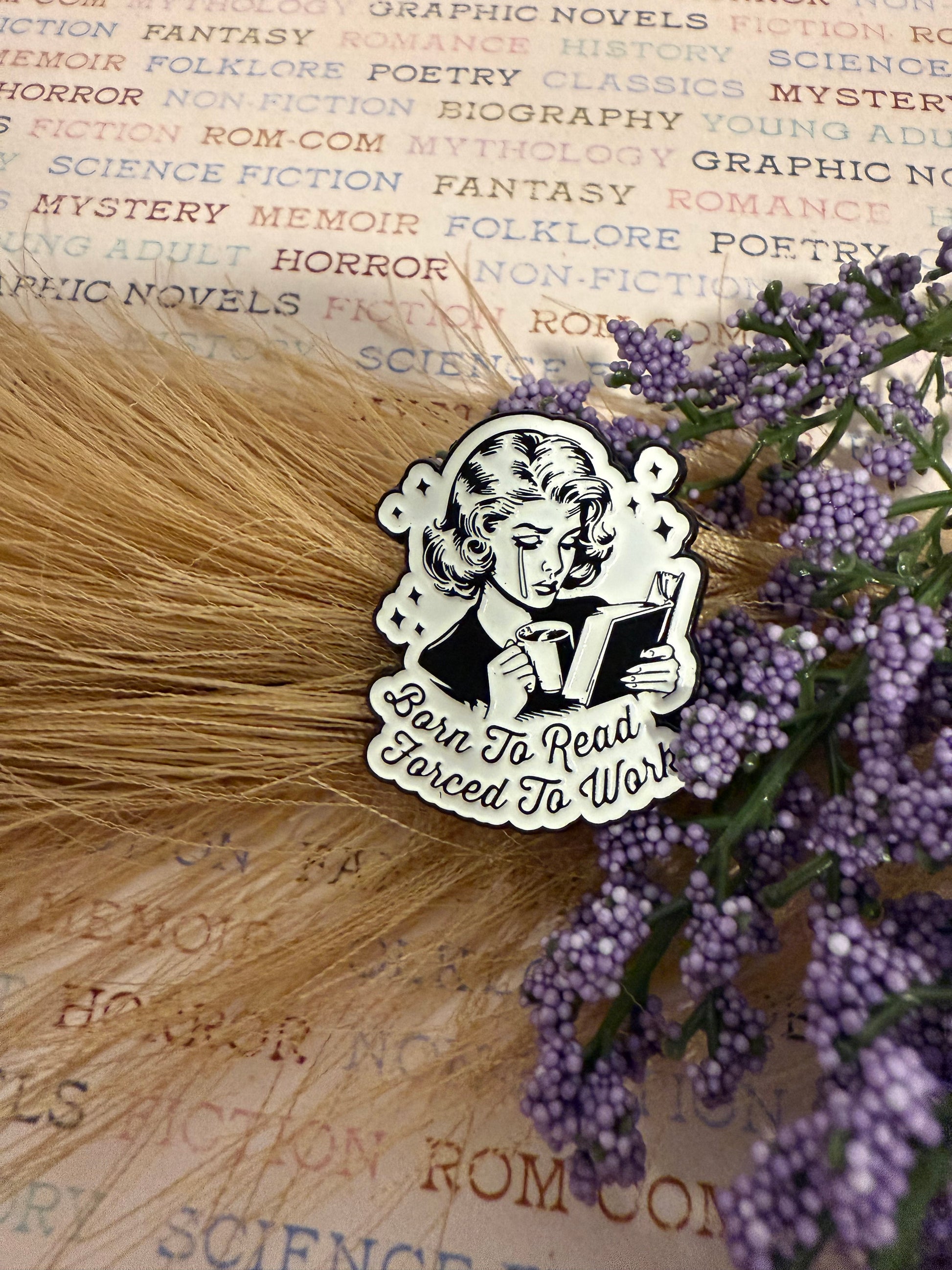 Born to read, force tu work - enamel pin