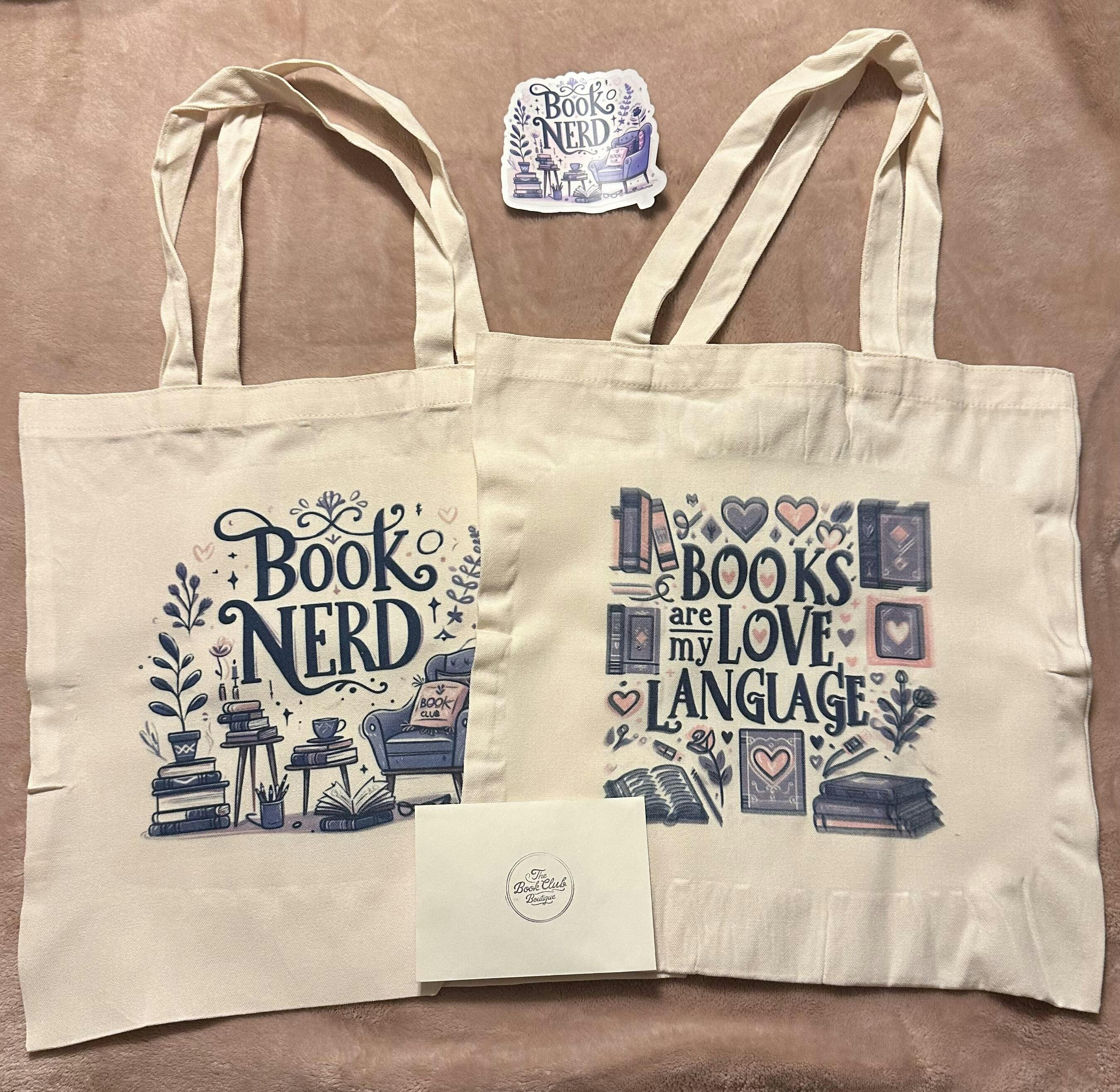 Introducing the perfect accessory for book nerds everywhere - our tote bag! With its spacious design, it's the ideal bag for carrying your favorite books, notebooks, and more. Show off your bookish style while staying organized and always having your literary essentials at hand. Order now and elevate your book-loving game!